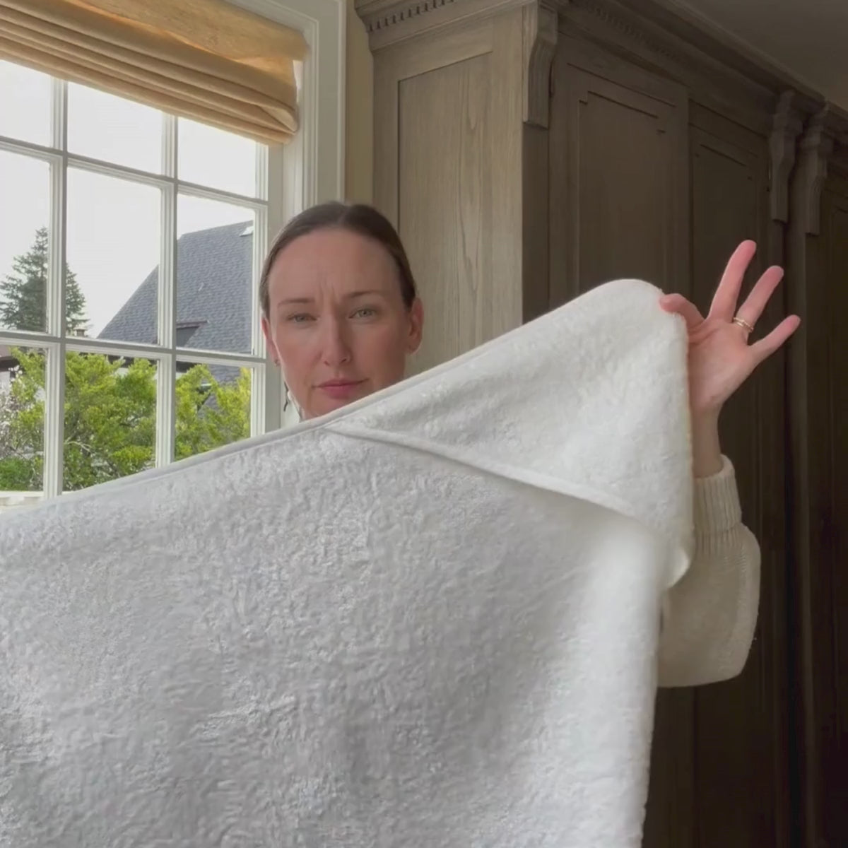 Our hooded baby towels are thoughtfully made in Turkey from ultra-soft, absorbent long staple Turkish cotton blended with bamboo for extra softness. They’re quick-drying, lightweight yet durable, and finished with a cozy hood and hand-tied evil-eye bead — a signature Pine & Palm touch. Each towel is ethically made in small batches to ensure the highest quality.