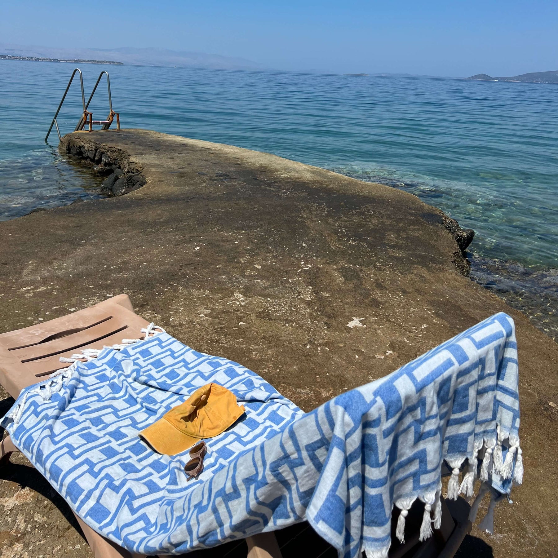 Catania Peshtemal in Sea Blue, Lightweight and Quick-Drying Turkish Peshtemal Beach Towels. Versatile and Eco-Friendly.